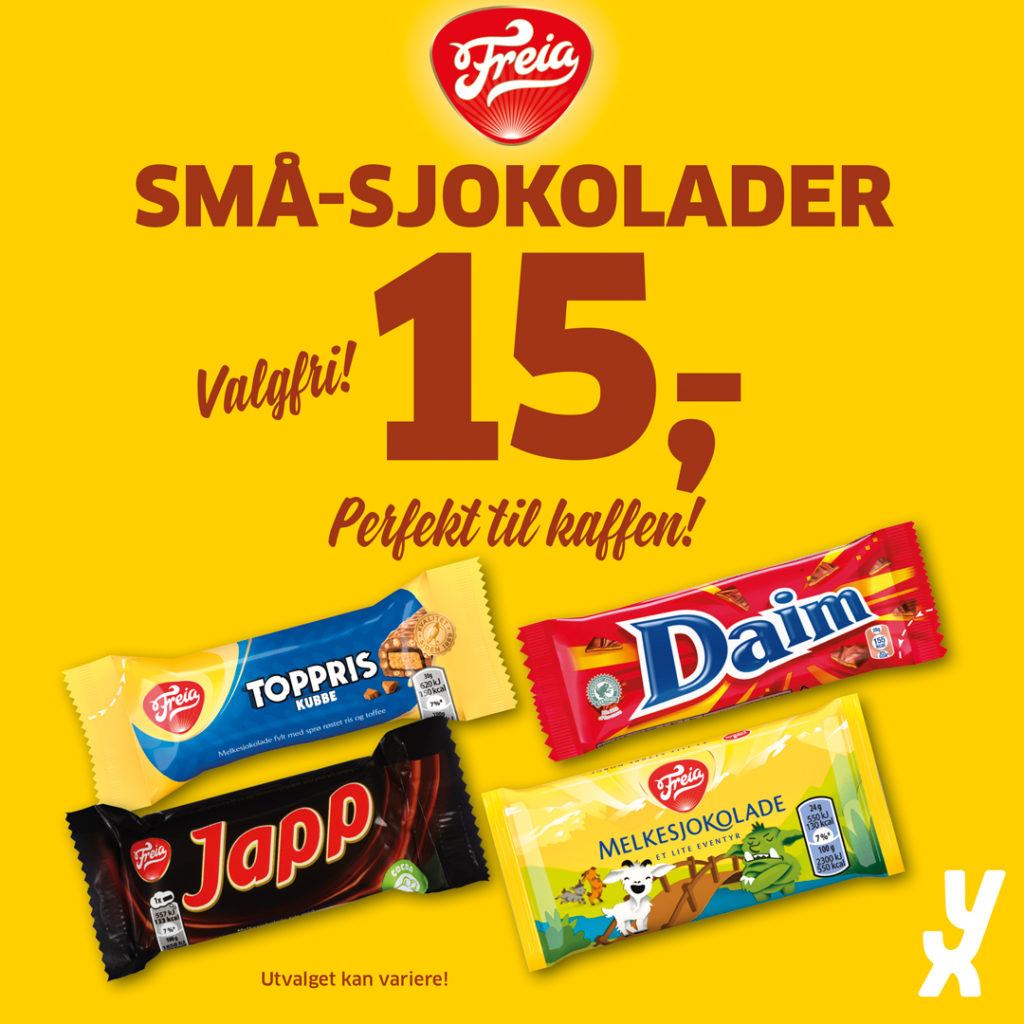 Småsjokolader fra Freia: 15,-